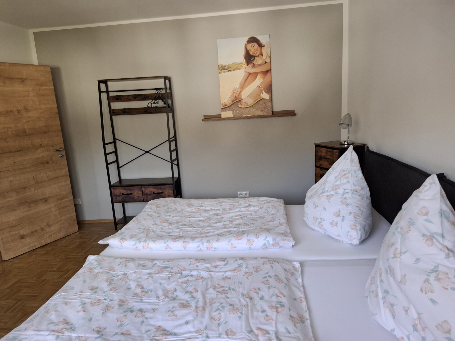 - Schlafzimmer mit Doppelbett und Beistellbettoption